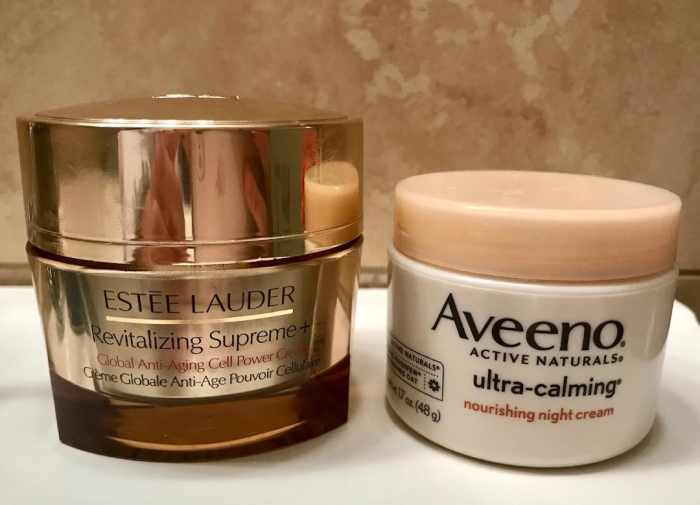 I love my Estee Lauder creams but look at the difference in the size of the jar. They are both 1.7oz! EL has gorgeous packaging but comparing it to the Aveeno, it seems so wasteful and takes up more space. I love the simplicity of the Aveeno jar.