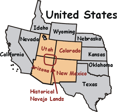 The Navajo live in the Four Corners area of the American southwest. This is the junction of northeast Arizona, southeast Utah, northwest New Mexico, and southwest Colorado.